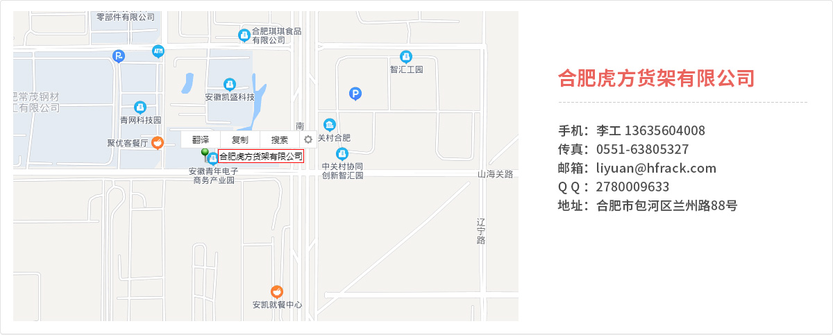 - 合肥虎方貨架有限公司從事經營倉儲貨架、物流周轉及搬運設備、倉庫管理系統等相關產品的生產、銷售、設計、安裝及采購集成服務。 公司主要產品:貨位式貨架、倉儲重型貨架、擱板式貨架、閣樓式貨架、駛入式貨架、鋼平臺貨架、穿梭式...